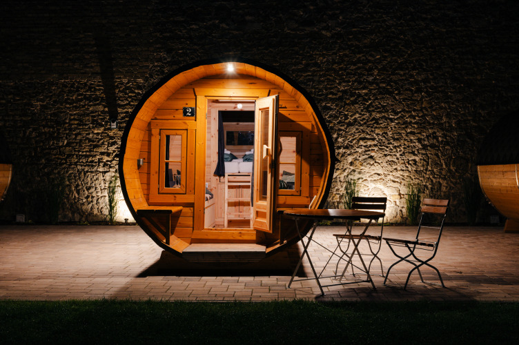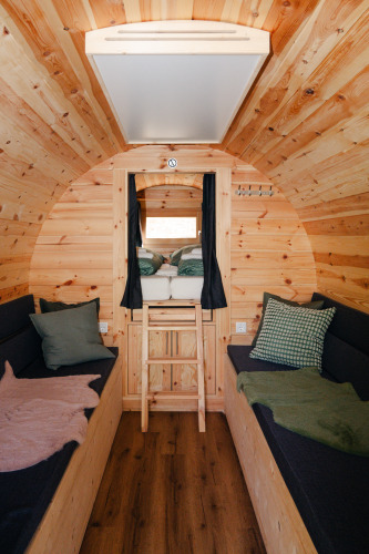 Med stor sans for detaljerne, er de komfortable vintønder indrettet til dig. Tønderne er udstyret med en rummelig dobbeltseng (2 x 2 meter) til 2 voksne, samt to ekstra senge til børn op til 12 år. Der er rigelig opbevaringsplads, herunder en værdiboks og et udtræksbord til 4 personer. Takket være infrarød opvarmning, er tønderne hyggelige og varme, selv på kølige dage.