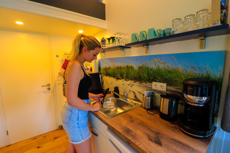 Når du træder ind i Tinyhouse LILLE EMS-IDYL, føler du dig straks hjemme. Et moderne og stilfuldt hus på 22 kvadratmeter venter på dig til en luksuriøs glamping-oplevelse. I det fuldt udstyrede køkken kan du tilberede din yndlingsret når som helst, mens den hyggelige sofa er perfekt til afslappende filmaftener – og den kan nemt laves om til et komfortabelt soveområde. Højdepunktet er dog Tiny Loft: herfra kan du beundre stjernehimlen gennem de store vinduer og vugges ind i en drømmende nat. Badeværelset har også alt, hvad du behøver til dit komfort med bruser, toilet og håndvask. Udenfor inviterer terrassen med picnicbord og hængekøje til afslapning, og hvis du har lyst til en hyggelig grill-aften, findes der endda en gasgrill. Tinyhouse LILLE EMS-IDYL er tilsluttet el- og vandforsyningen på campingpladsen Lathener Marsch, så du mangler ingenting, og der er masser af ekstra ting klar til dig: kaffe, te, krydderier, toiletartikler og en velkomstdrink er tilgængelige. Bøger og spil sørger også for variation – for en uforglemmelig tid i dit lille, men perfekt udstyrede tilflugtssted.