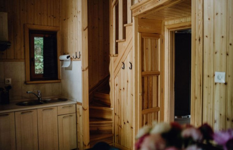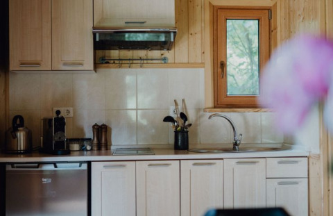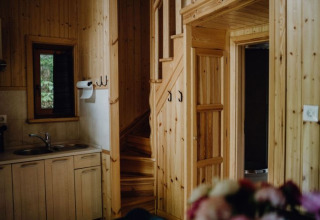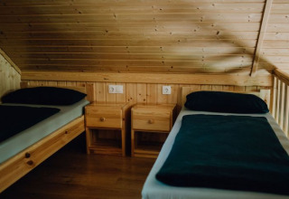 Oplev et afslappende ophold i en af de charmerende bjælkehytter på naturcampingpladsen Waldbad Isny. Bjælkehytterne er solidt bygget af træ og ligger omgivet af træer og enge, 10 til 40 meter fra den naturlige sø. Med 45 m² boligareal kombinerer de rustik charme med komfortabelt udstyrede faciliteter. I stueetagen finder du en spise- og opholdsstue, et veludstyret tekøkken med to kogeplader, køleskab, Nespresso-kaffemaskine, elkedel, service og bestik. Der er også et badeværelse med bruser og toilet og et soveværelse med en dobbeltseng (1,35 x 1,90 m). Den åbne hems på øverste etage nås via en smal trappe og har to enkeltsenge (0,8 x 1,95 m). Fra den overdækkede veranda med havemøbler kan man nyde udsigten og roen i Allgäu.