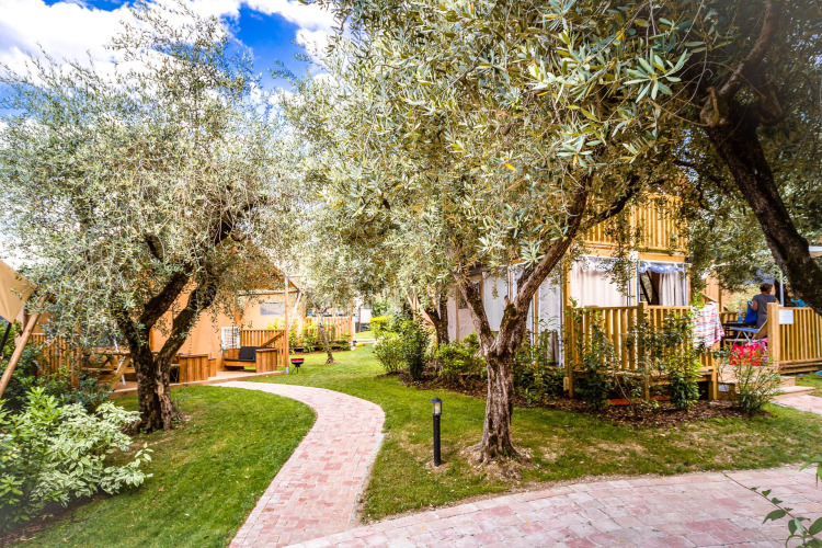 Weekend Glamping Resort, beliggende i San Felice del Banco-området, har en spektakulær udsigt over Gardasøen. Her bor du i luksuriøse safaritelte eller komfortable hytter, omgivet af oliventræer og med alle faciliteter til rådighed. Med swimmingpool, vandrutsjebaner, underholdning, ponyridning og friskbagte pizzaer på terrassen er det ferie hver dag. Den hyggelige atmosfære, børnevenlige indretning og italienske gæstfrihed gør dette til et ideelt glampingparadis for familier.
