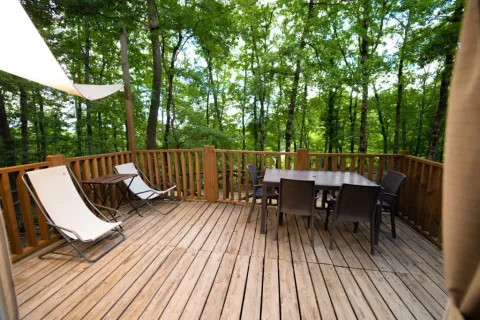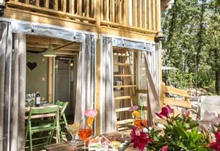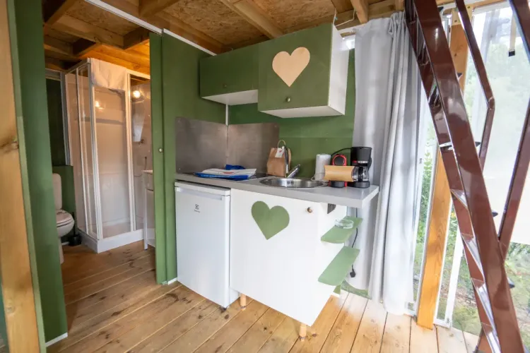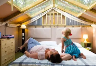 Oplev Air Lodge, et unikt to-etagers design skabt specielt til ægte eventyrere. Denne bolig indfanger essensen af glamping ved at kombinere komfort med naturen. Du finder en hyggelig dobbeltseng på hver etage, hvor den øverste etage byder på spektakulær udsigt, så du bogstaveligt talt kan sove under stjernerne.