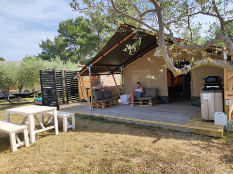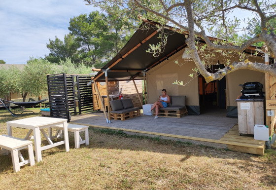 Safaritenten er luksuriøst indrettet med blandt andet boxmadras-senge, loungemøbler, et flytbart udekøkken, hængekøje, gasgrill og en Nespresso-maskine. Ved ankomst står teltet klar til dig, og bortset fra hånd- og viskestykker behøver du intet selv at medbringe.