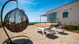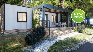 Camping Home Green tilbyder et komfortabelt og moderne ophold for op til 5 gæster fordelt på 37 kvadratmeter boligareal, suppleret af en 25 kvadratmeter stor møbleret terrasse. Overnatningen har aircondition og gratis Wi-Fi, hvilket sikrer et behageligt og forbundet ophold. Stuen indeholder en sovesofa til én person samt et fuldt udstyret tekøkken med køleskab, induktionskogeplade, mikrobølgeovn og kaffemaskine. Soveværelset har en dobbeltseng (160x200 cm), mens det andet værelse har to enkeltsenge (80x195 cm).