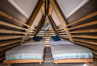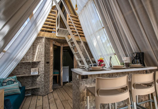 Premium Two Bedroom Safari Tent (2+2) tilbyder et komfortabelt ophold nær stranden med 25 m² boligareal, et ekstra 12 m² galleri og en 13 m² terrasse. Teltet er designet til op til fire gæster og har aircondition, gratis Wi-Fi og en ILLY espressomaskine. Det fuldt udstyrede tekøkken har mikrobølgeovn, køleskab, induktionskogeplade, kaffemaskine og elkedel. Stueetagen rummer et soveværelse med dobbeltseng (160×200 cm), mens galleriet indeholder to enkeltsenge (80×200 cm). Badeværelset er udstyret med bruser, hårtørrer og badeartikler. Yderligere bekvemmeligheder inkluderer et LCD-fladskærms-tv med IPTV, personlig bærbar computersafe samt sengelinned og håndklæder, som regelmæssigt udskiftes (sengelinned hver tredje dag, håndklæder hver anden dag). Kæledyr er velkomne mod et ekstra gebyr.