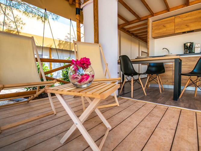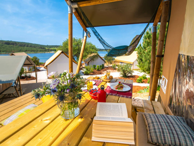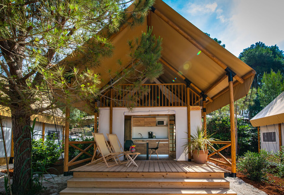 Arena One 99 Glamping er mere end blot et ophold: det er et tilflugtssted hvor natur og høj komfort smelter sammen. Moderne faciliteter er omhyggeligt integreret i det skovklædte område: du finder faciliteter som wellnessområde, saunaer og spabade, yoga- og meditationsplatforme samt et windsurfcenter direkte på pladsen. Parkens layout bevarer både skygge og grønne områder, så gæster kan slappe af under fyrretræerne kun få skridt fra havet. Med gratis wifi, ladestationer til elbiler, overvåget indhegning og en blanding af afslapnings- og aktivitetszoner, er dette en destination for alle som søger et raffineret udendørsophold. Familier, par, wellness-entusiaster og naturelskere sætter alle pris på balancen mellem ro, fællesskab og den bekvemme adgang til Istriens kulturelle og naturrige højdepunkter.