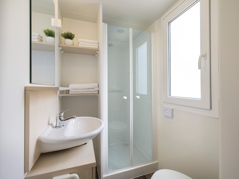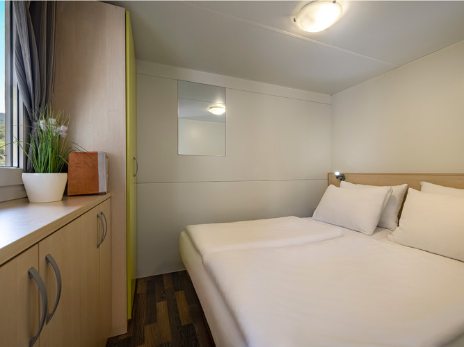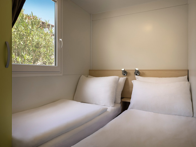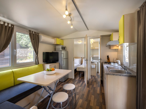 Beliggende i frodig middelhavsgrønne omgivelser og kun få skridt fra det klare, blå hav, er Marina Home for 4+1 på Valamar Camping Marina et perfekt glampingtilflugtssted for familier eller små grupper. Her forenes hjemmets komfort med naturens charme, og denne mobile bolig byder på en moderne, stilfuld pause lige ved havet.