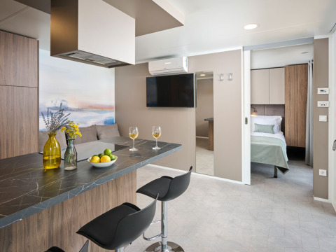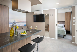 Amber Luxury Holiday home har wi-fi (gratis). Parken har gratis wi-fi i fællesområder.Er der en campingbutik ved Aminess Style Camping Atea Resort?
