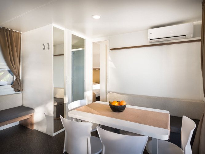 Comfort Holiday Home tilbyder 30 m² velindrettet boligareal, ideelt til familier eller små grupper. Den har to soveværelser, ét med dobbeltseng og ét med to enkeltsenge, samt to private badeværelser med brusere. Stuen indeholder et fuldt udstyret køkken med kaffemaskine, elkedel, mikrobølgeovn og køleskab. For ekstra bekvemmelighed er der sengelinned, håndklæder, toiletartikler, hårtørrer og værdiboks til rådighed. Moderne bekvemmeligheder såsom aircondition, satellit-tv og Wi-Fi er inkluderet. Udenfor er der en rummelig terrasse på 23 m², møbleret med spisebord, stole, to liggestole og øvrige havemøbler. Parkering er tilgængelig, kæledyr er velkomne, og der kan arrangeres babysenge eller ekstra senge. Denne røgfri bolig kombinerer komfort, funktionalitet og afslapning for et bekymringsfrit ophold.