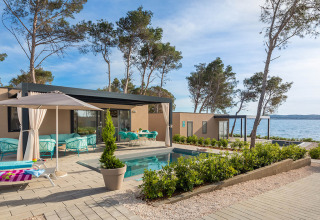 Oplev Aminess Style Camping Avalona Resort, en enestående glampingdestination på den maleriske ø Pag i Kroatien. Beliggende i en fyrreskov lige ud til det krystalklare Adriaterhav, forener resortet ubesværet naturens skønhed med moderne luksus. Nyd topmoderne glampinghytter med overdækkede terrasser, private pools og betagende havudsigt. Familier vil sætte pris på det store vandland med farverige rutsjebaner, splash-zoner og børnepools, mens daglige aktiviteter og en miniklub holder de yngste underholdt. Resortet byder på en restaurant på stedet, der serverer frisk middelhavsmad i moderne omgivelser, fitnessfaciliteter, minigolf og cykeludlejning til de aktive. Med kæledyrsvenlige faciliteter og gratis WiFi garanterer dette glampingparadis både afslapning, komfort og eventyr for alle aldre.