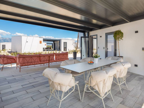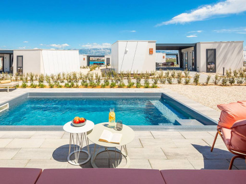 Oplev Aminess Style Camping Avalona Resort, en enestående glampingdestination på den maleriske ø Pag i Kroatien. Beliggende i en fyrreskov lige ud til det krystalklare Adriaterhav, forener resortet ubesværet naturens skønhed med moderne luksus. Nyd topmoderne glampinghytter med overdækkede terrasser, private pools og betagende havudsigt. Familier vil sætte pris på det store vandland med farverige rutsjebaner, splash-zoner og børnepools, mens daglige aktiviteter og en miniklub holder de yngste underholdt. Resortet byder på en restaurant på stedet, der serverer frisk middelhavsmad i moderne omgivelser, fitnessfaciliteter, minigolf og cykeludlejning til de aktive. Med kæledyrsvenlige faciliteter og gratis WiFi garanterer dette glampingparadis både afslapning, komfort og eventyr for alle aldre.