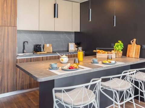 Cudowne położenie, zadbany obiekt, sklep aquapark taka mała wioska wakacyjna. Przyjemne restauracje sporo atrakcji (niestety większość srogo płatna). Problemem był domek w pierwszej linii. Widok byl na budkę do przebierania. Zaraz obok deptak i multum ludzi, którzy nie zawsze potrafili sie zachować. Dzieci wydzierajace sie w nieboglosy, dorośli zagladajacy ukradkiem na taras i krzyczący zamiast rozmawiać. Brakowało mi reagującej ochrony obiektu - bo sam monitoring był ale zapewniam, nie czułam sie komfortowo siedząc na tarasie gdy obok, grupka młodzieży robiła sobie miejsce spotkań albo dzieci na hulajnogach wycigi. Kolejna sprawa- samochody nie miały wjazdu na teren a busików do obsługi wczasowiczów nie bylo wystarczająco dużo, zeby zapewnić komfort. Obsluga zjawiała sie około południa z chęcią posprzątania basenu tylko problem byl taki, ze akurat w nim byliśmy. Takie pracę powinny sie odbyć i zakończyć zanim klienci zaczną z atrakcji korzystać a nie w środku dnia. Domek maly ale wyposażony dość dobrze. Problem był z ciepłą wodą. 4 osoby nie mogły sie kąpac jedna po drugiej gdyż brakowało ciepłej wody. Odleglosc pomiędzy domkami wystarczająca zeby zajrzeć sąsiadowi do talerza. Ogólnie pobyt udany, ale cena nieadekwatna do standardu.