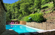 • Børn og voksne leger sammen i swimmingpoolen på Camping Les Genêts feriepark i Occitanie, Frankrig.