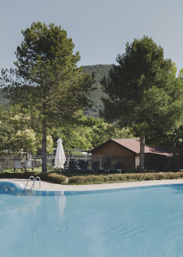 Her bor du mellem bjerge, skove og enge, i et landskab hvor naturen stadig er virkelig uberørt. Glamping-indkvarteringerne, fra hyggelige træbungalower til stemningsfulde bell telte, giver dig den frihedsfølelse, som camping har — kombineret med komforten fra et boutiquehotel. På campingpladsen finder du en pool med liggestole, rutsjebane og børnepool. Der er også en padelbane og sportsområde, så du kan være aktiv i løbet af dagen. Om sommeren er Kids Club åben, og der arrangeres forskellige aktiviteter. Takket være det bæredygtige koncept nyder du ro, plads og et mindre økologisk fodaftryk. Uanset om du rejser med familien, som par eller med venner, er dette den ideelle glampingdestination for at udforske de spanske Pyrenæer med komfort.