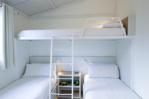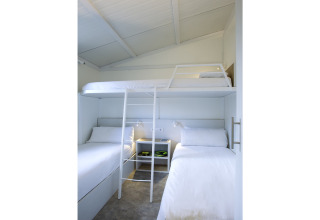 Tamarit Park Resort 1 THALASSA er et hyggeligt chalet til op til 5 personer, perfekt til en afslappende ferie under den spanske sol. Med to komfortable soveværelser er det et godt valg for familier eller en lille gruppe venner. Det ene soveværelse har en dobbeltseng, mens det andet har to enkeltsenge og en praktisk højseng – børn elsker som regel denne plads.