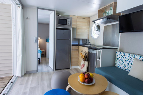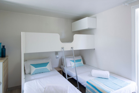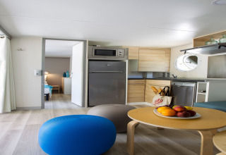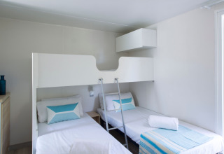 Tamarit Park Resort 2 PATIO er et hyggeligt chalet for op til 5 personer – perfekt til en afslappet strandferie med familie eller venner. Indendørs finder du to komfortable soveværelser: et med en dobbeltseng og et med to enkeltsenge plus en højseng til den femte person. Alle har deres egen plads, og ingen behøver sove på sofaen.