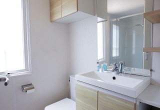 Du har også to moderne badeværelser, hver med bruser og toilet. Det betyder, at der ikke er kø om morgenen, og at der er masser af privatliv, hvis du rejser med familie eller et andet par. Chaletet er udstyret med aircondition, så du altid kan trække dig tilbage til et behageligt køligt rum på varme spanske sommerdage.