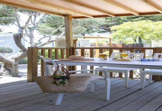 Udendørs kan du slappe af på din overdækkede terrasse eller veranda. Det er et indbydende sted til en langsom morgenmad, en eftermiddagsdrink i skyggen eller en afslappet grill om aftenen. Fordi terrassen er overdækket, kan du nyde at være ude, selv når solen er stærk.