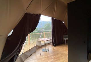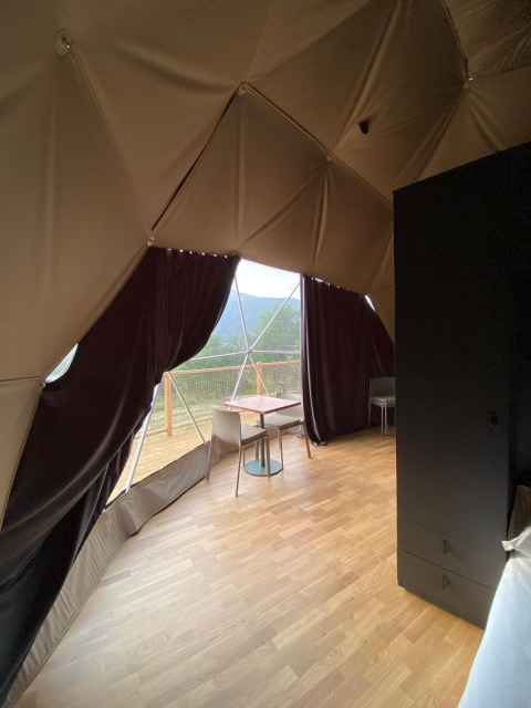 Jeg synes, det er den bedste campingplads, jeg nogensinde har været på. Den har en fantastisk beliggenhed tæt på mange naturparker med smukke udsigtspunkter og vilde vandrestier. Det er et perfekt valg, hvis du søger noget langt væk fra de overfyldte turistområder og ønsker at fordybe dig i den lokale kultur. Teltene har et gennemsigtigt tag, hvor du kan se stjernerne, mens du ligger og sover. Det eneste dårlige ved vores telt var, at de ikke havde rengjort taget, så vi ikke kunne se så meget gennem det, men det var ikke noget stort problem. Vi gik bare udenfor for at se stjernerne. Og det er smukt, fordi der ikke er nogen lysforurening, så man kan se mange flere stjerner end i de større byer. De har et spa og også en restaurant, der kun er åben i højsæsonen (sommeren). I lavsæsonen er priserne meget mere rimelige, men der er ingen service. Så hvis du kommer for at nyde kulden (ligesom mig), skal du sørge for at medbringe din egen mad, for der er ingen supermarkeder i nærheden. Teltene har et fantastisk køkken med alt, hvad du har brug for til at lave mad og slappe af og drikke lidt vin foran pejsen efter en lang dag med vandreture. I tilfælde af nødsituationer har de et lille marked i receptionen med et par ting, du kan overleve på, såsom snacks, drikkevarer, vin, hygiejneprodukter og trækul til grill.