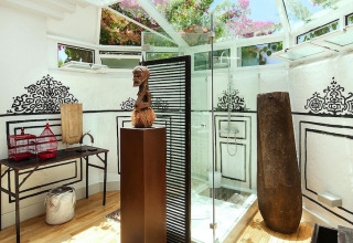Et af de helt store højdepunkter er badeværelset med glastag. Her får du den unikke fornemmelse af at tage brusebad under åben himmel, mens du stadig nyder al komforten ved dit eget private rum – en lille hverdagsluksus, der gør dit ophold ekstra mindeværdigt.