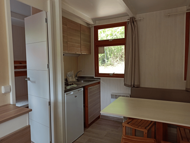 Udenfor er der en privat terrasse med havemøbler, som er ideel til at spise morgenmad i den friske luft eller slappe af om aftenen. Du har også adgang til alle campingpladsens faciliteter, som f.eks. swimmingpool, legeplads og restaurant. Uanset om du planlægger en eventyrlig ferie eller bare vil slappe af, tilbyder Bungalow Aratz alt, hvad du har brug for.