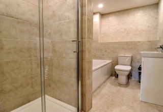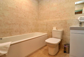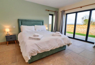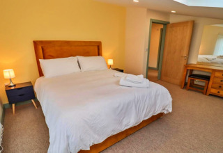 Det er lige så komfortabelt at sove. I stueetagen finder du et stilfuldt soveværelse med en king-size seng og et eget badeværelse med walk-in bruser – perfekt hvis nogen i selskabet gerne vil undgå trappen. Ovenpå er der et hyggeligt dobbeltværelse og et fleksibelt twin-værelse med zip-and-link-senge, der kan laves om til en ekstra dobbeltseng. Med moderne badeværelser på begge etager har alle deres eget rum og privatliv.