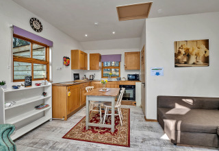 Tekøkkenet er kompakt men veludstyret, så du nemt kan tilberede enkle måltider og snacks. Der er køleskab, kogeplade, mikrobølgeovn, brødrister, elkedel og alle de nødvendige redskaber, du får brug for. Uanset om du laver en hurtig morgenmad før en lang gåtur eller sammensætter en afslappet middag for to, har du alt lige ved hånden.