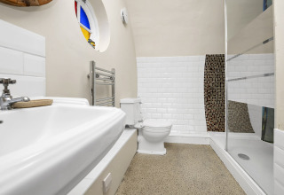 Badeværelset var rummeligt og velholdt og gav os alle de bekvemmeligheder, vi havde brug for efter en lang dag i det fri.