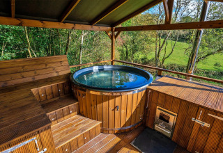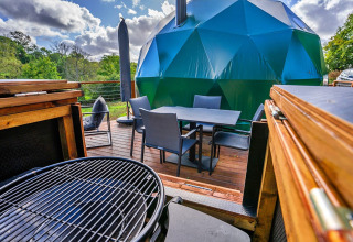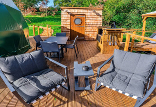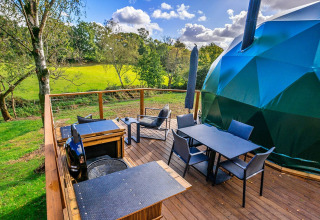 Træd udenfor og oplevelsen bliver endnu bedre. Den specialdesignede hævede terrasse snor sig rundt om domen og tilbyder forskellige siddepladser til ethvert humør: nyd lange, dovne morgenmåltider, kryb sammen med en bog i eftermiddagssolen eller læn dig tilbage med en drink, mens stjernerne dukker op over træerne. Det private vildmarksbad er det helt store trækplaster – perfekt til afslapning efter en dag med oplevelser.