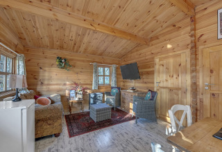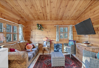 Inde finder du et lyst, praktisk opholdsrum med alt, du behøver for et afslappende ophold. Det veludstyrede tekøkken har køleskab, kogeplader, mikrobølgeovn, brødrister, elkedel og alle nødvendige redskaber til at lave enkle måltider eller en rolig morgenmad. I opholdsstuen kan du slappe af i sofaen, se dine yndlingsprogrammer på digitalt TV eller planlægge morgendagens eventyr med den gratis Wi-Fi. Et privat badeværelse med bruser, håndvask og toilet gør lodgen helt selvstændig.