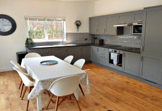 Inde finder du en rummelig stue i åbent plan, der er perfekt til at være sammen som gruppe. Lav mad sammen i det fuldt udstyrede køkken, del en lang brunch ved bordet, eller stræk dig ud på de komfortable sofaer efter en aktiv dag ude. Indretningen er stilfuld, men hjemlig, så det straks føles som et sted, hvor du kan smide skoene og slappe af.