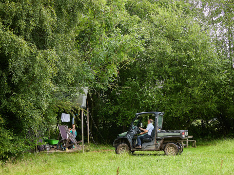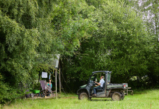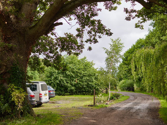 Der er en parkeringsplads ved gården. Derfra kan du køre din bagage til overnatningsstedet med en trillebør. Biler er ikke tilladt på gårdens område eller i nærheden af teltene.