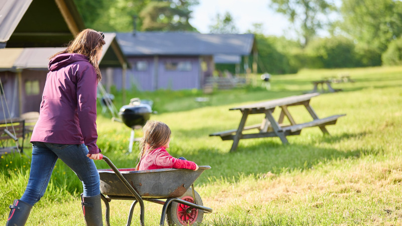 Der er en parkeringsplads ved gården. Derfra kan du køre din bagage til overnatningsstedet med en trillebør. Biler er ikke tilladt på gårdens område eller i nærheden af teltene.