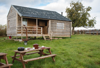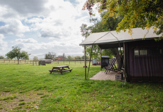 Telthytten har alt, hvad du har brug for til et afslappende ophold. Indenfor finder du et rummeligt opholdsrum med en hyggelig sofa og et stort spisebord, hvor du kan samles med hele familien eller vennerne. Er du i tvivl om, hvorvidt du skal gå indenfor eller udenfor? På verandaen kan du sidde i skyggen under markisen med et picnicbord og liggestole til afslapning. Udenfor kan du nyde et spabad!