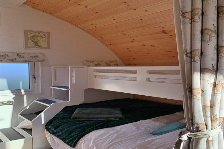 Hytten er smukt isoleret og har gulvvarme, så du er varm og komfortabel i alle sæsoner. Hundle Dale har plads til op til fem personer med to dobbeltsenge og en enkelt køjeseng – ideelt til par, familier eller en lille vennegruppe. Små børn er mere end velkomne: børn i alderen 0–3 år bor gratis, så det er nemt at tage babyen eller den lille med på glamping-ferie.