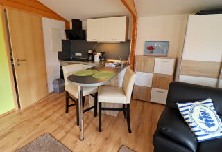 Din bungalow ligger på en 2.000 m² indhegnet grund, omgivet af skov – fredeligt, grønt og vidunderligt privat. Indenfor føles alt friskt og moderne. I den hyggelige stue kan I slappe af på sofaen, streame jeres yndlingsserier på det store smart-TV og nyde det varme skær fra den elektriske dekorationspejs, som giver ekstra stemning på kølige aftener.