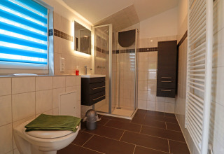 Badeværelset er rummeligt og moderne, med en walk-in-bruser som gør din daglige rutine ekstra komfortabel. Efter en dag ude er det det ideelle sted at friske sig op, inden I slår jer ned til en afslappet aften. Sengelinned er inkluderet, og din seng er allerede redt ved ankomst, så din ferie starter det øjeblik, du træder ind ad døren.