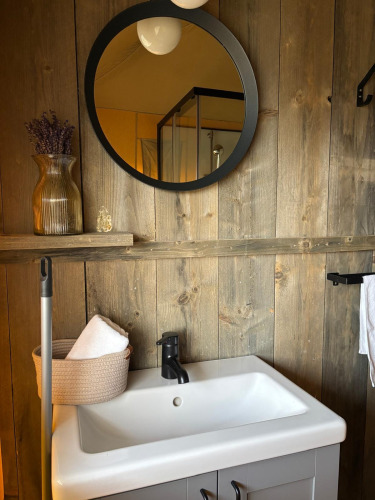 Slap af i Glamfield Lodge Deluxe med hottub og oplev glamping på et højere niveau. Denne husdyrfri lodge har plads til fire personer og har to soveværelser med sengelinned, dyner og skabe. To badeværelser med bruser, håndvask og toilet giver ekstra komfort. Det fuldt udstyrede køkken med Nespresso, køleskab og elkedel gør det nemt at lave mad selv, mens opholdsstuen med sofaområde og spiseplads inviterer til afslapning sammen. Udenfor venter en træveranda med loungesæt, hængekøje og en betagende udsigt over vandet. Aircondition sørger for en behagelig temperatur, gratis wifi holder dig forbundet, og hottubben indbyder til ultimativ afslapning i alle sæsoner. Privatliv og luksus mødes her i en unik naturoplevelse.