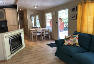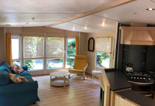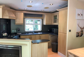 Innen erwartet Sie ein heller und einladender Wohnraum, der in die offene Küche übergeht, sodass Sie gemeinsam kochen, plaudern und entspannen können. Die Küche ist komplett ausgestattet mit Kühlschrank mit Gefrierfach, 4-Flammen-Gasherd, Mikrowelle, Wasserkocher und Senseo-Kaffeemaschine. Ob Sie ein einfaches Frühstück zubereiten oder vor dem Ausflug in Ruhe einen Kaffee genießen möchten – hier finden Sie alles, was Sie brauchen.