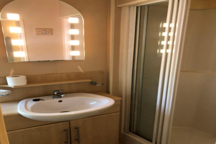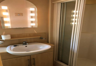 Das Chalet verfügt über zwei komfortable Schlafzimmer: ein Hauptschlafzimmer mit Doppelbett und ein zweites Schlafzimmer mit zwei Einzelbetten – ideal für Kinder, Freunde oder Großeltern. Das Badezimmer ist kompakt, aber praktisch, mit Dusche und Waschbecken, und es gibt ein separates WC für zusätzlichen Komfort, wenn Sie mit mehreren Personen verreisen.