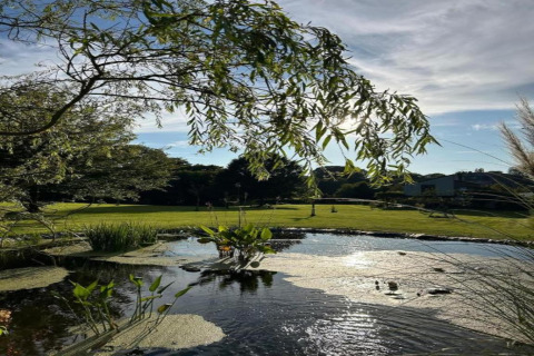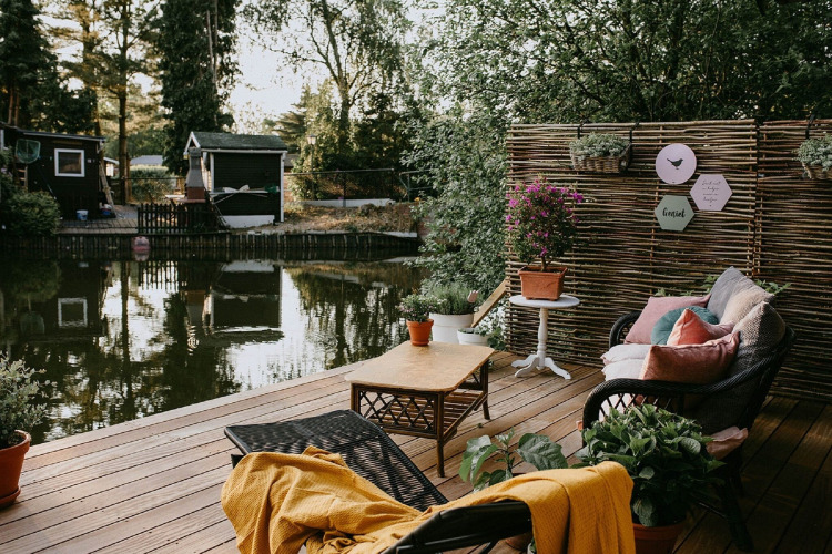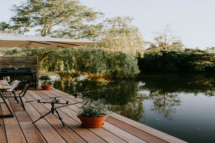 Treten Sie auf die großzügige Terrasse und genießen Sie Ihren Morgenkaffee direkt am Wasser. Am Abend können Sie mit einem Glas Wein in der Hand den Sonnenuntergang über dem Grünen beobachten. Von Ihrer eigenen Terrasse aus können Sie angeln oder einfach nur die Ruhe genießen.