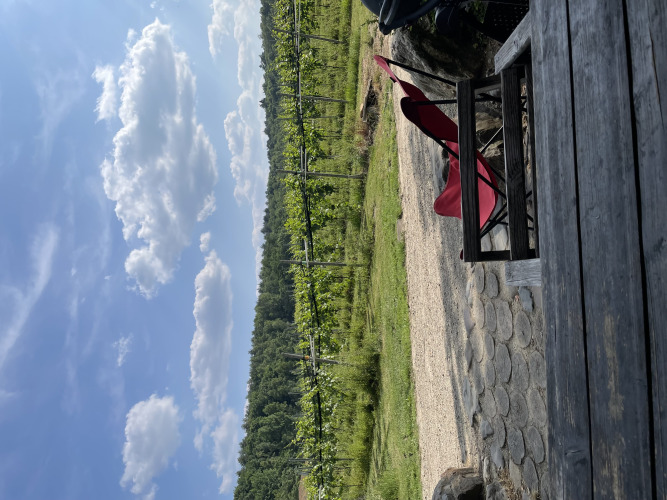 das schöne ursprüngliche Haus und die herrliche Aussicht auf den Weinberg