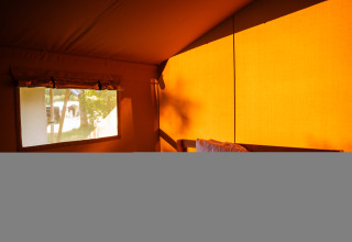 Dieses stimmungsvoll eingerichtete Safarizelt verfügt über eine Wohnfläche von etwa 25 Quadratmetern mit Stehhöhe im gesamten Zelt und ist mit einer herrlich großzügigen Terrasse mit Vordach ausgestattet.