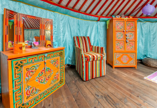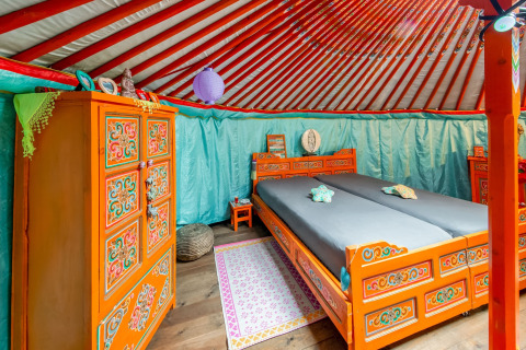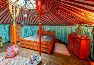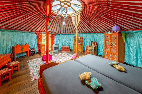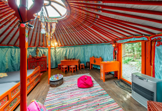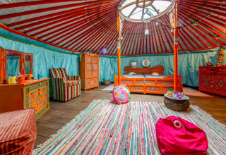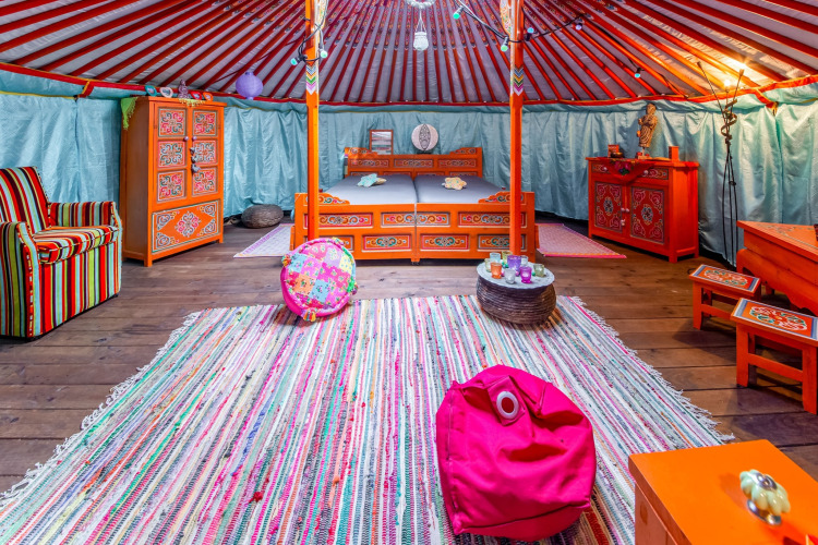 Vor fast 20 Jahren begann die Besitzerin mit einem kleinen Häuschen in ihrem Garten. Im Laufe der Zeit kamen mehrere Vintage-Wohnwagen hinzu und nach dem Kennenlernen eines mongolischen Paares schließlich eine echte mongolische Jurte – komplett mit einigen originalen Möbelstücken. Alle Unterkünfte teilen sich das großzügige Grundstück, aber dank der vielen Bäume und der cleveren Anordnung genießt du trotzdem viel Privatsphäre und ein wunderbar abgeschiedenes Gefühl.
