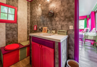 Auch die sanitären Anlagen sind umweltfreundlich und authentisch: Du benutzt Trockentoiletten. In der Nähe gibt es einen gemeinsamen Entspannungsbereich mit Wellness-Angeboten, eine Feuerstelle und einen Pizzaofen – perfekt für lange Sommernächte unter den Sternen. Röste Marshmallows, backe deine eigene Pizza und genieße die entspannte Atmosphäre auf dem Land.