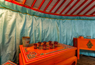 Die Jurte ist nur von Mai bis September verfügbar und somit ein perfektes Sommerversteck. Im Inneren erwartet dich eine gemütliche, warme Atmosphäre mit einfacher, aber komfortabler Einrichtung, die dazu einlädt, zur Ruhe zu kommen. Im Einklang mit dem authentischen mongolischen Stil gibt es weder Fenster im Dach noch in den Wänden, sodass sich die Jurte intim und behaglich anfühlt.