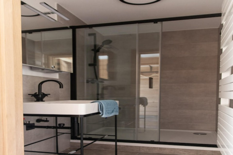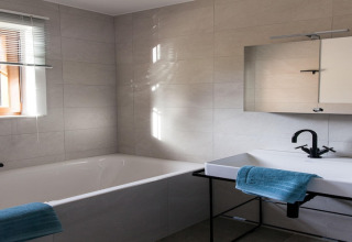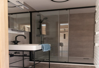 Im Inneren findest du einen behaglichen Wohnbereich, in dem ihr euch nach einem Tag draußen gemeinsam entspannen könnt. Mache den Pelletofen an, lass dich auf das Sofa sinken und schau einen Film auf dem Smart-TV. Die voll ausgestattete Kochnische bietet alles, was du für gemeinsame Abendessen brauchst, inklusive einer Spülmaschine, damit niemand beim Abwasch hängen bleibt.