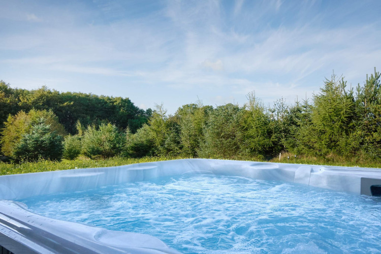 Schieben Sie die Tür auf und treten Sie direkt auf die sonnige Terrasse. Hier können Sie sich in den Außenwhirlpool sinken lassen, einen Drink an der frischen Luft genießen und zusehen, wie die Sonne langsam hinter den sanften Feldern und dem Wald verschwindet. Es ist ein Ort, an dem die Abende von ganz allein lang und entspannt werden.