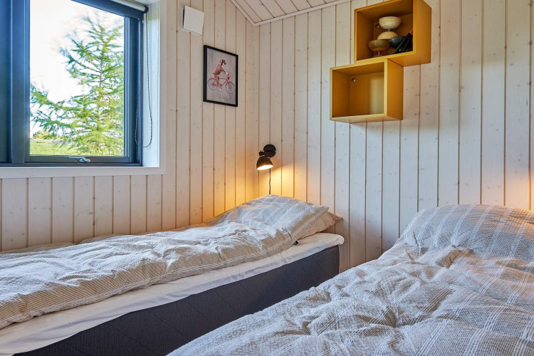 Die Lage ist ein echtes Highlight. Das Haus liegt in Vestre Sømarken, in einer sanft hügeligen Landschaft mit wunderschönem Blick auf Wald und Felder. Der Sandstrand hier ist attraktiv, naturbelassen und meist wunderbar ruhig – perfekt für lange Spaziergänge, Schwimmen und entspannte Stunden am Meer.