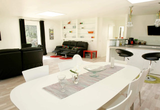 Im Inneren herrscht eine helle, warme und einladende Atmosphäre. Die offene Küche und das Wohnzimmer bilden das soziale Herz des Hauses – ideal, um gemeinsam zu kochen, zu plaudern und Zeit miteinander zu verbringen. Am Abend können Sie den Holzofen anheizen, sich ein Getränk einschenken und das gemütliche Leuchten genießen, während Sie Spiele spielen oder den nächsten Tag planen.