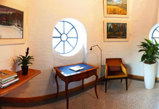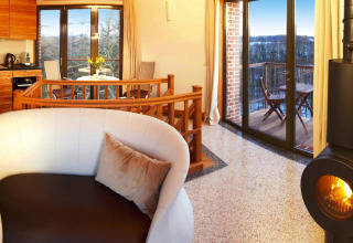 Ganz oben erwartet Sie eine kleine, aber gut ausgestattete Küche und eine kuschelige Sitzecke mit Kamin – perfekt für lange, romantische Abende mit einem Glas Wein und dem Knistern des Feuers im Hintergrund. Am Morgen können Sie auf Ihren privaten Balkon treten, die frische Luft einatmen und mit Blick über die Bäume und das alte Parkgelände frühstücken.